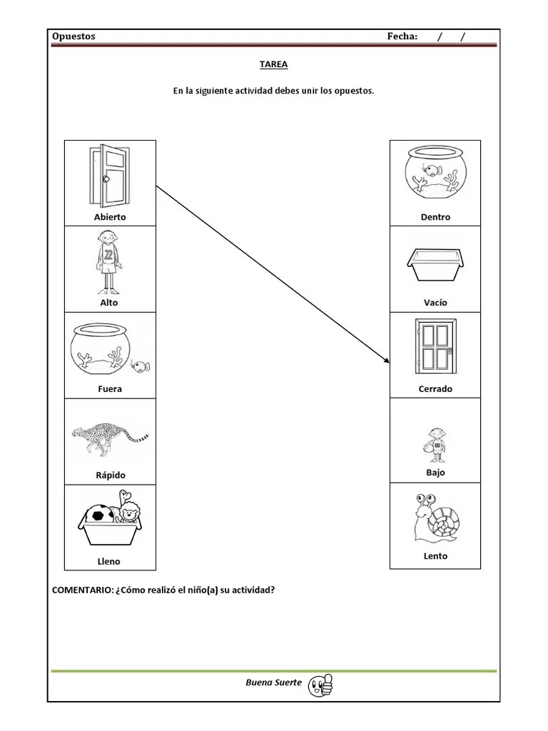 Antónimos, opuestos, contrarios para niños con dibujos.